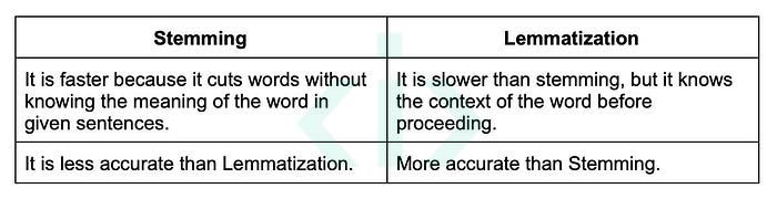 Stemming فرآیندی مبتنی بر قواعد است که انتهای کلمات را کوتاه میکند، در حالی که Lemmatization از دیکشنری بهره میبرد تا کلمه به شکل ریشهاش (lemma) تبدیل شود، با دقت و معنا بیشتر.