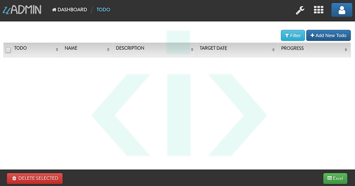 مدل TODO شما همین الان روی داشبورد وجود دارد. آن را باز کنید و یک تسک به لیست Todo خود اضافه کنید: